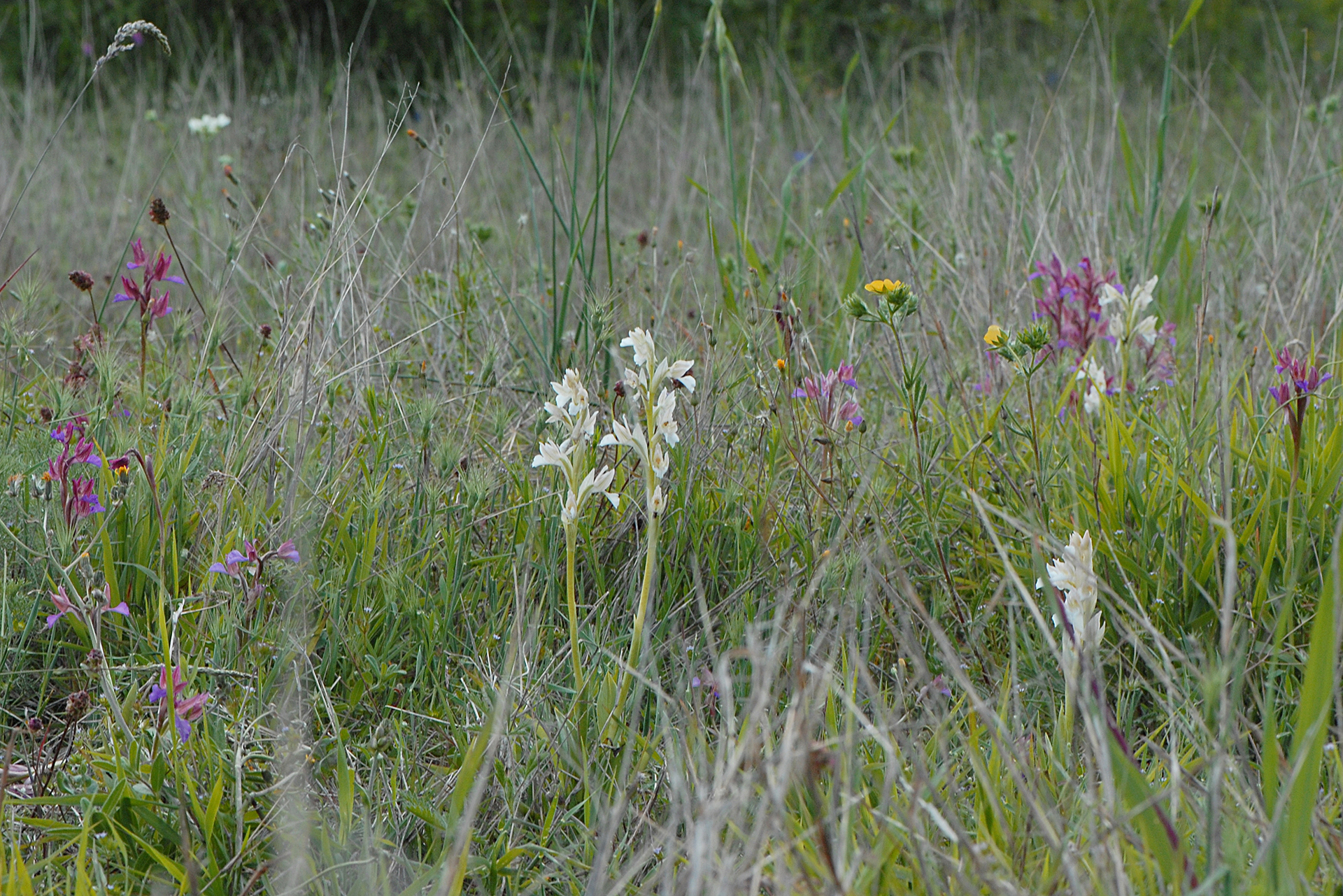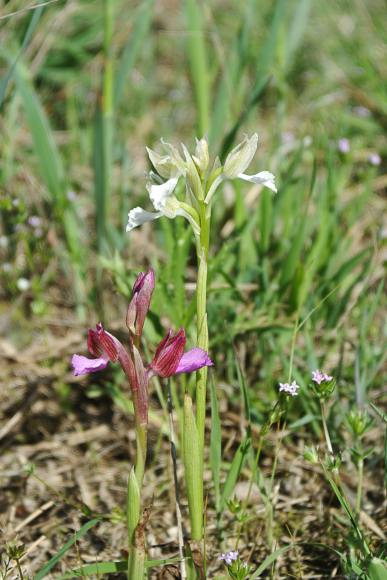 – nella var. papilionacea sia il casco tepalico che il labello hanno solitamente colori di fondo chiari (rosa-rossastri verso i margini e biancastri verso il centro), ma il labello può avere colori un po’ più vivaci e base più candida; il casco inoltre è percorso da ben marcate striature longitudinali intensamente porporine, dello stesso colore dei trattini più o meno brevi e sottili che si allineano sul labello;