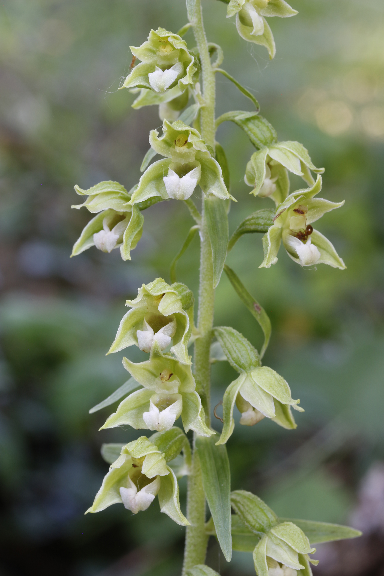 Infiorescenza lassa, con 25-30 fiori piccoli, poco aperti, verdastri pallidi, orizzontali o penduli, autogami e a volte cleistogami, forse anche occasionalmente allogami a inizio fioritura.