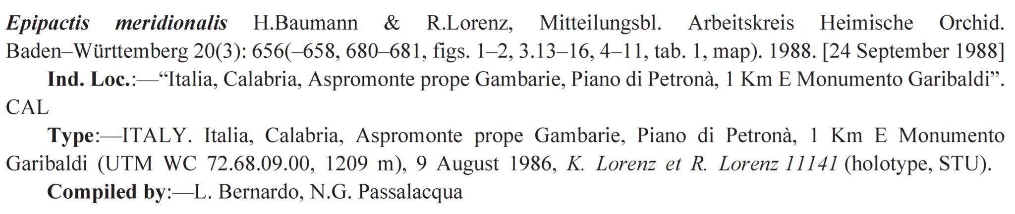 Dal protologo di Helmut Baumann e Richard Lorenz 1988: