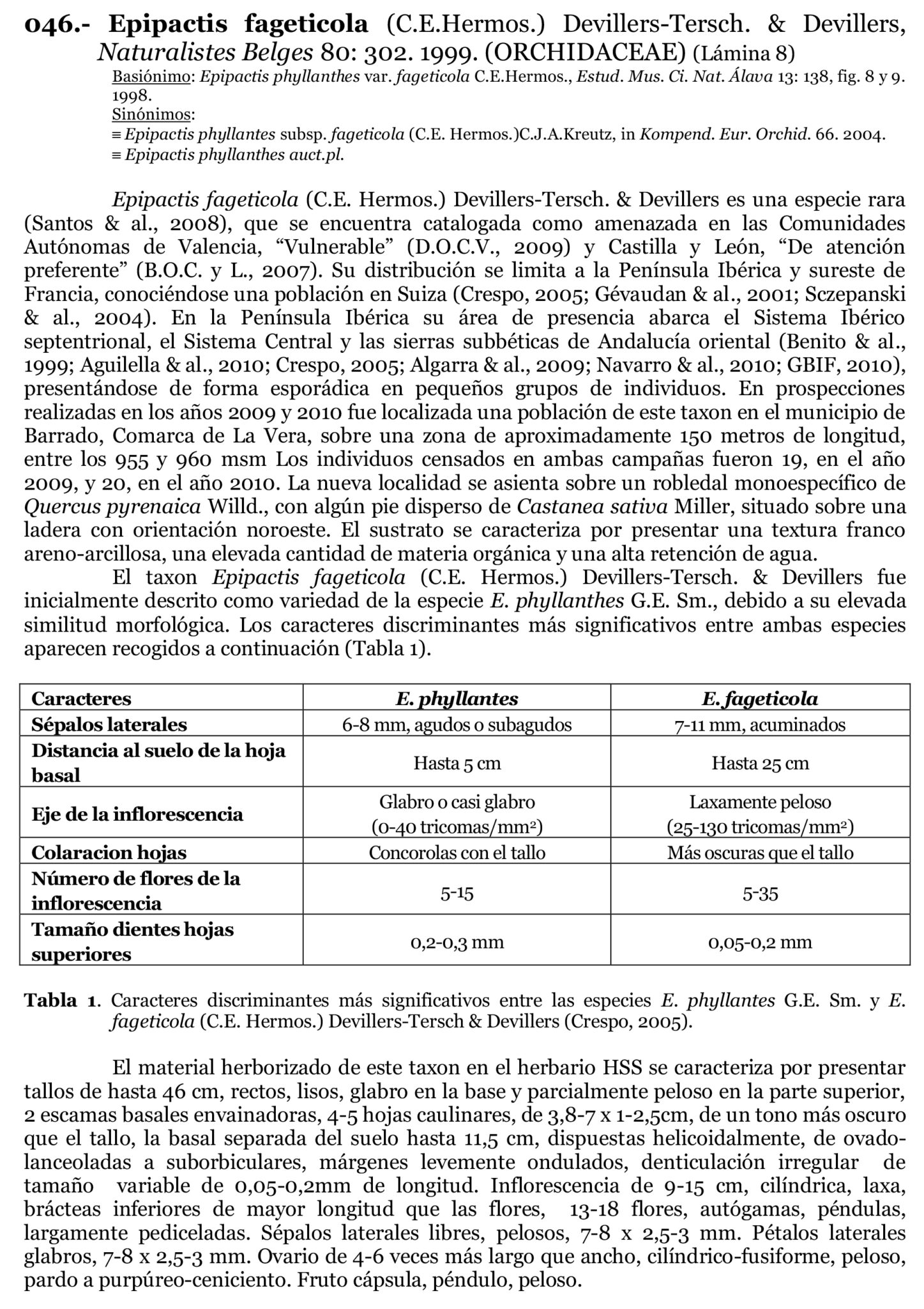 Nota descrittiva su esemplari iberici di Epipactis fageticola (2011):