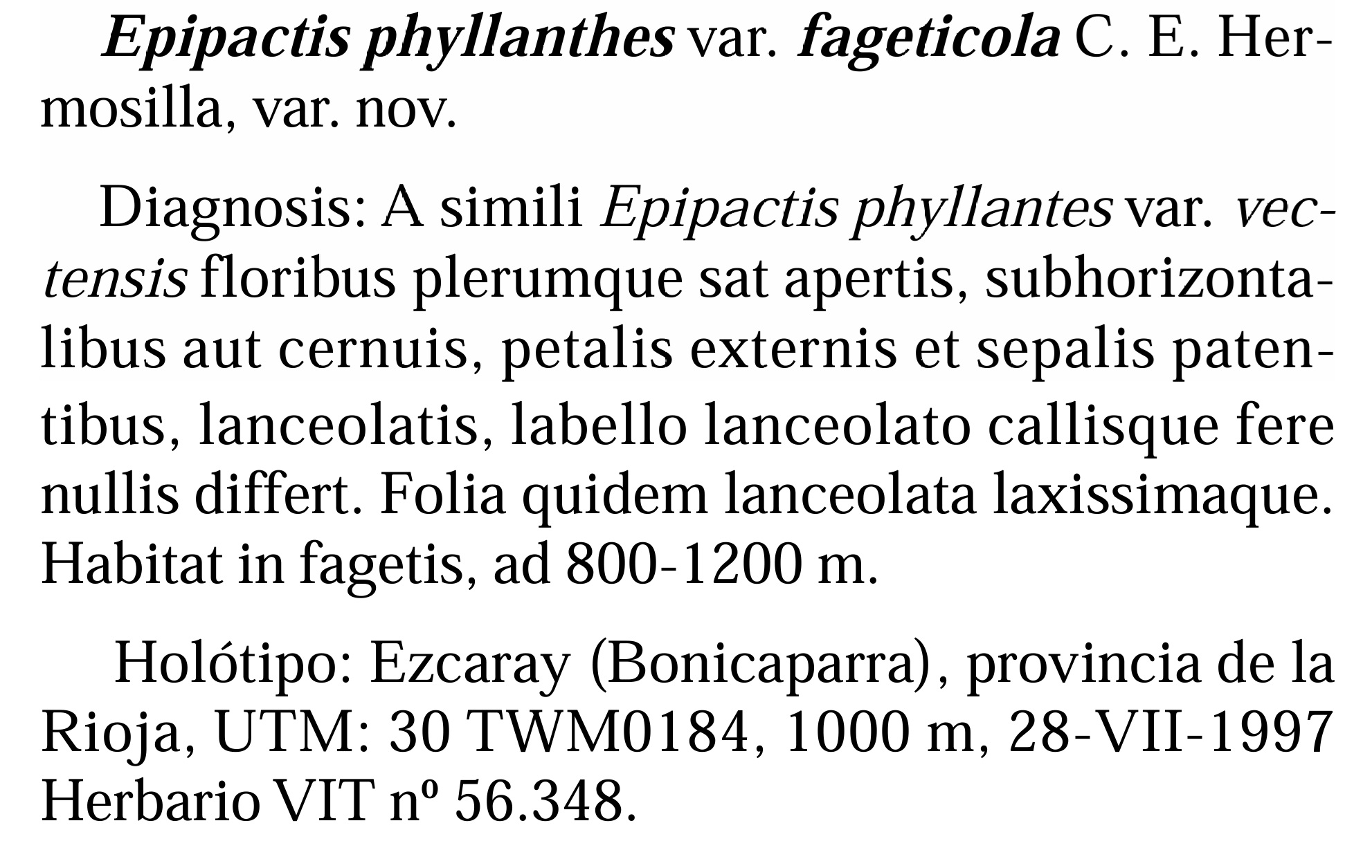 Protologo di Carlos Enrique Hermosilla (1998)
