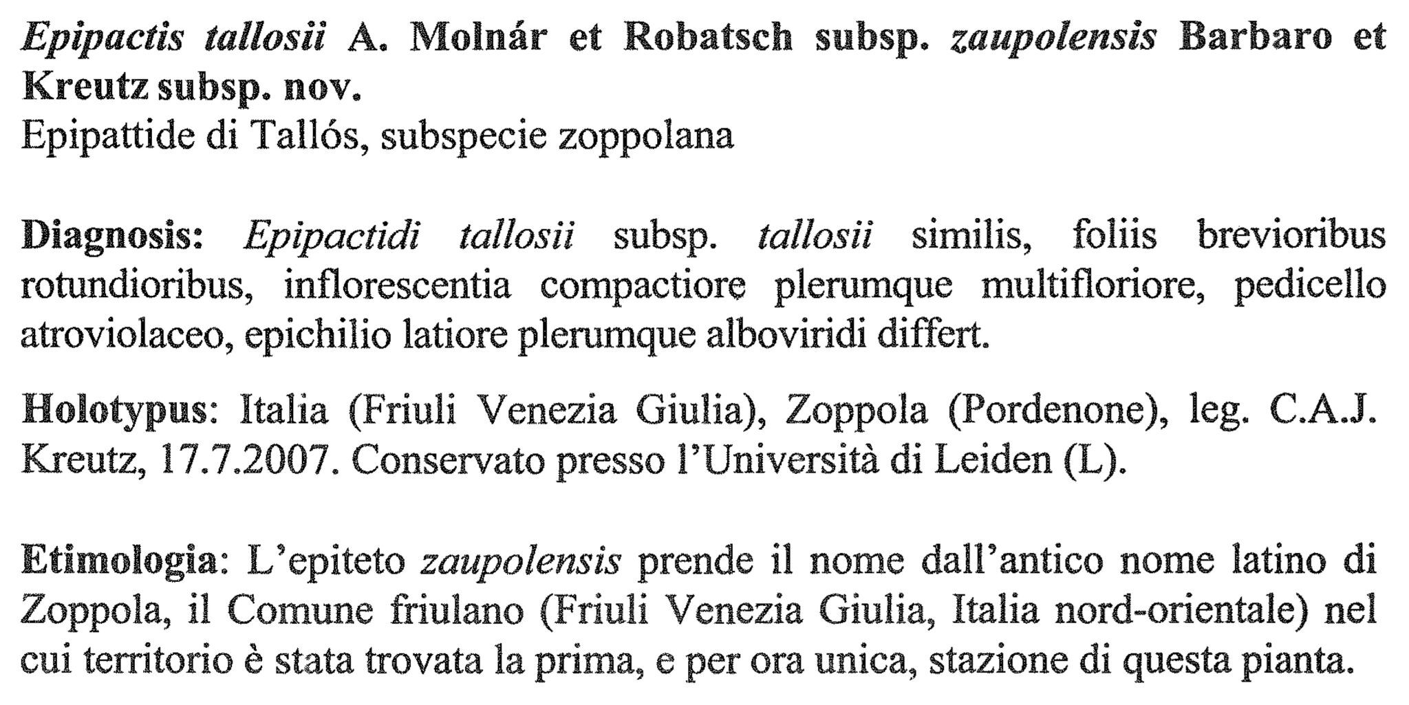 (PDF) Epipactis tallosii A. Molnár & Robatsch subsp. zaupolensis Barbaro & Kreutz subsp. nov. (Orchidaceae) in Italia nord-orientale (Friuli Venezia Giulia)
